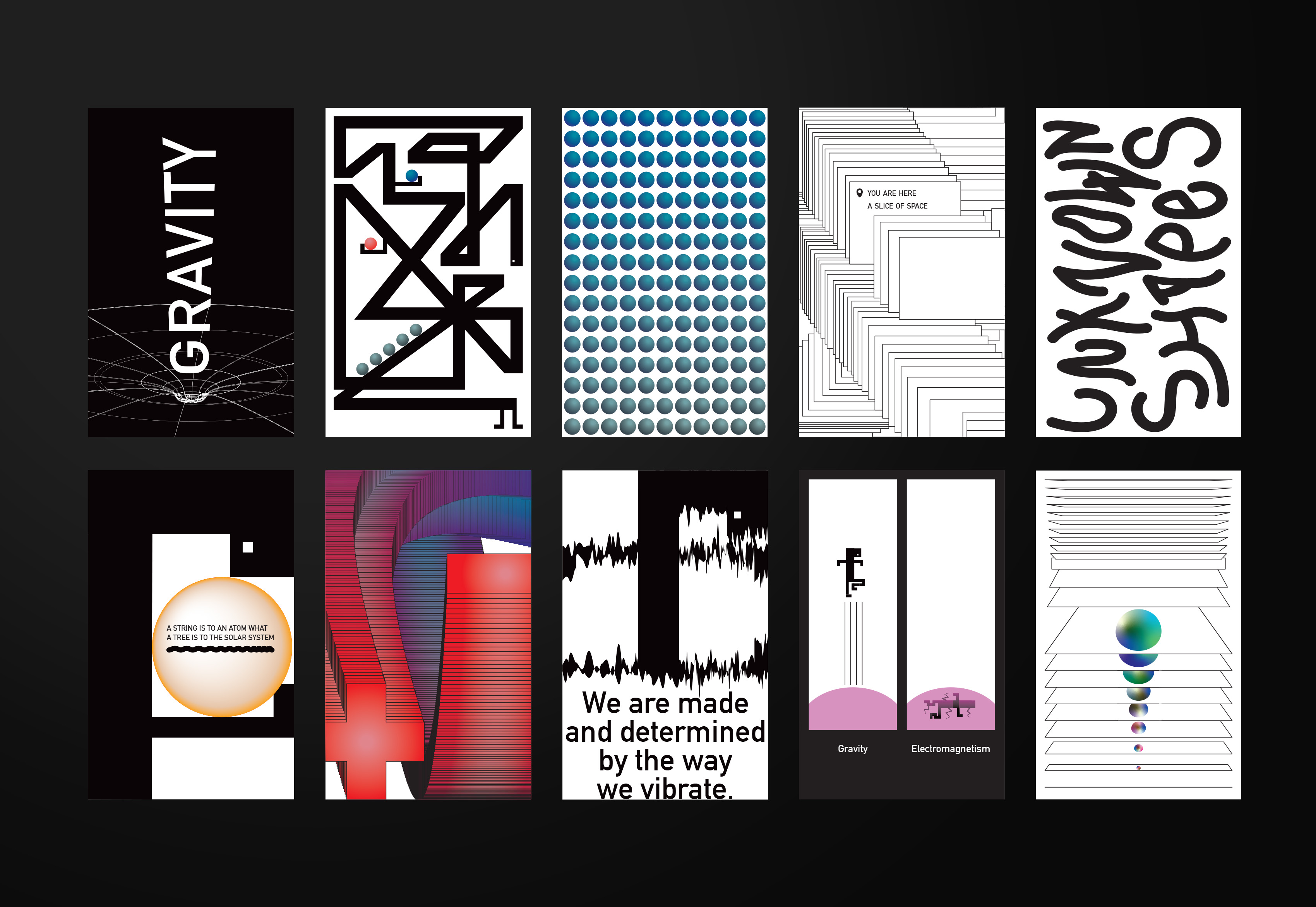 The intent of the project is to convey something as complex as string theory, in a straightforward and simple manner; the final result is a book that alternates short bits of text, with bold illustrations and posters.